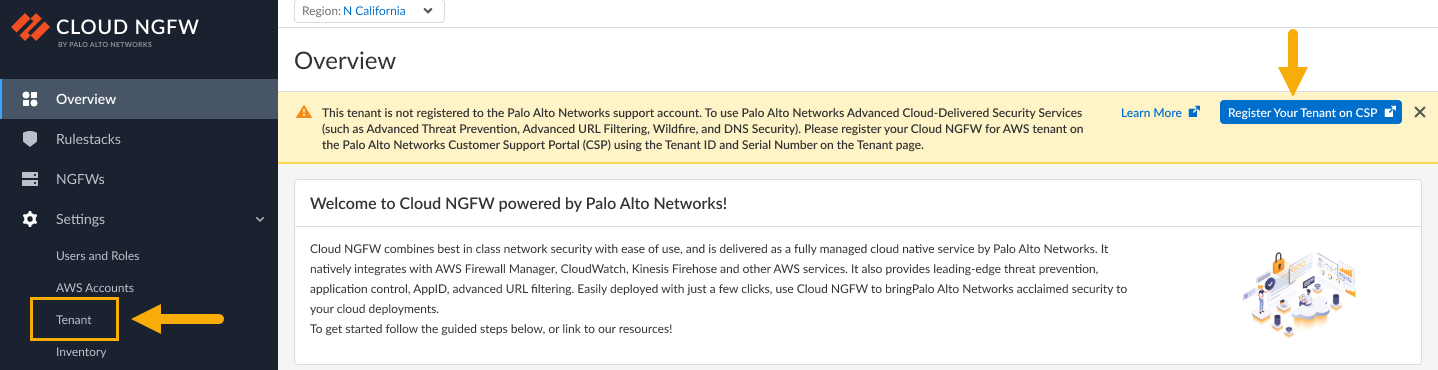 register your Cloud NGFW tenant in the Customer Support Portal.