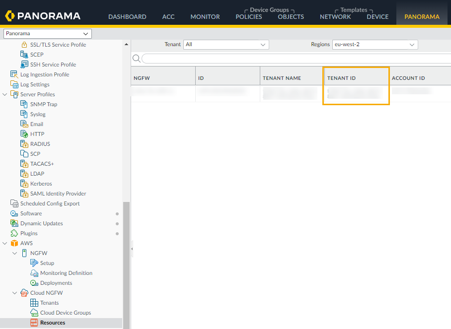Locate the Tenant ID for the Cloud NGFW resource: