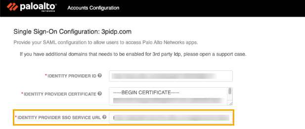 - You must have administrator access on the identity provider to update the SSO configuration details provided by Palo Alto Networks.
