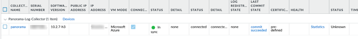 Push to the log collector Group; explicitly push to the Collector Group to resolve synchronization issues noted in the previous step. This step is necessary. In Panorama, select Push to devices > Edit Selections > Collector Group.