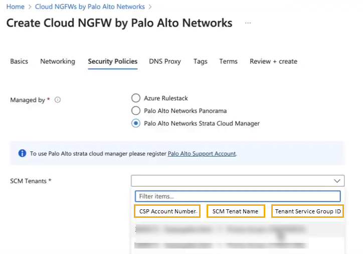 - Ensure that your Cloud NGFW for Azure tenant and Strata Cloud Manager are registered to the same Customer Support Portal (CSP) account.