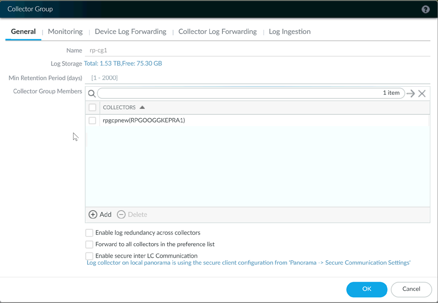 If you are using a Panorama virtual appliance, you can create a Log Collector and add it to a Log Collector Group.- Go to PanoramaCollector Groups and Add a Collector Group.