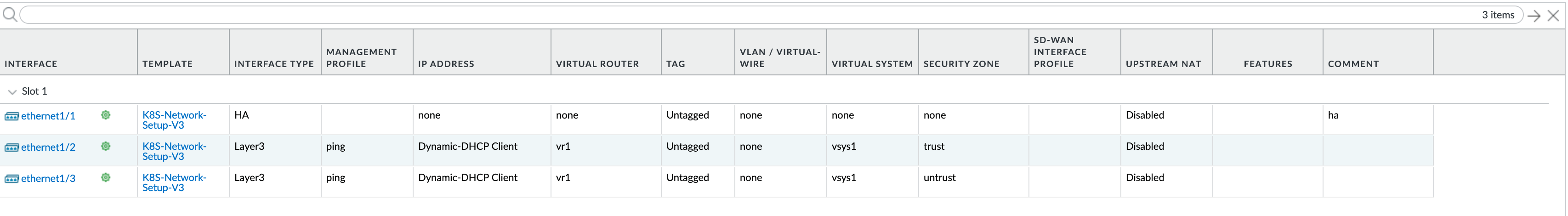 If you are using Advanced Routing consider that CN-Series firewalls deployed in CNF mode are only supported in EKS and on-prem environments. If you are using Advanced Routing with the Kubernetes 3.0.0 plugin, you must configure it manually on the template stack; in the file pan-cn-mgmt-console.yaml, set the flag PAN_ADVANCED_ROUTING:”true”.
