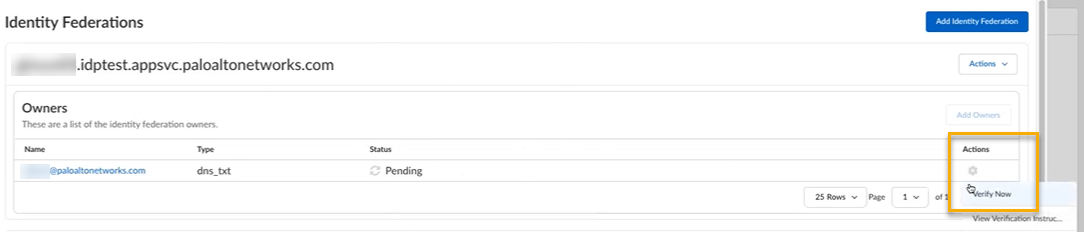 7. In Common Services, select Verify Now to verify ownership of the identity federation.