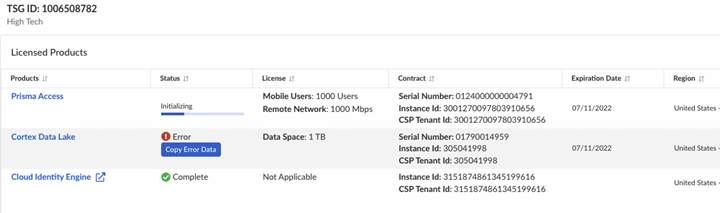 4. If the license activation has failed, then you can see the error status and Copy Error Data.