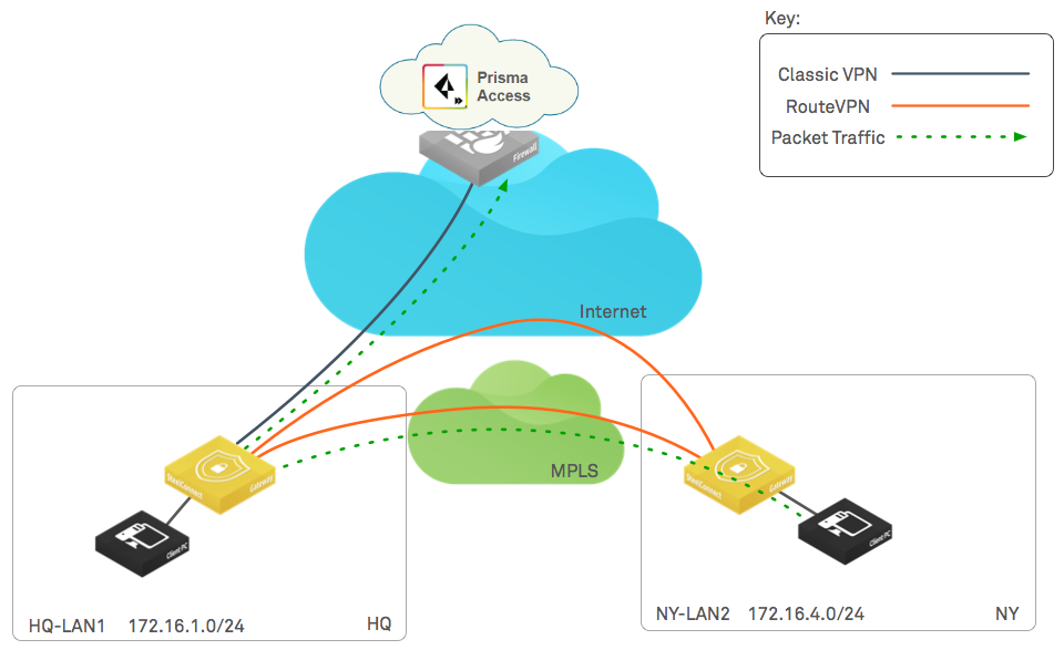 the SD-WAN to the internet takes the ClassicVPN tunnels to Prisma Access.