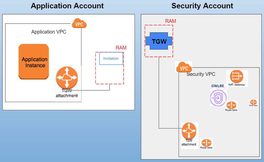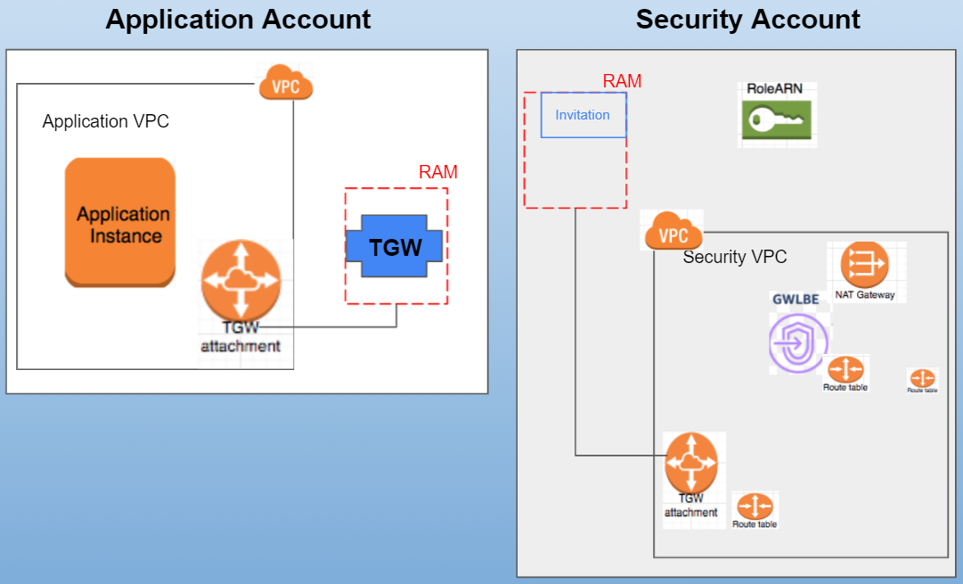 | 2 (multi account application) | In Security Account | In Security Account | In Application Account | East-West |