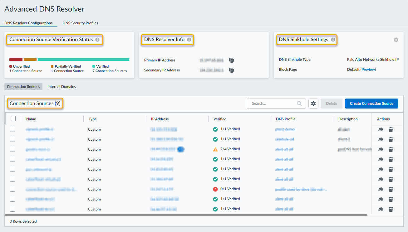 3. Review your Advanced DNS Security Resolver configuration settings and provide connection sources.