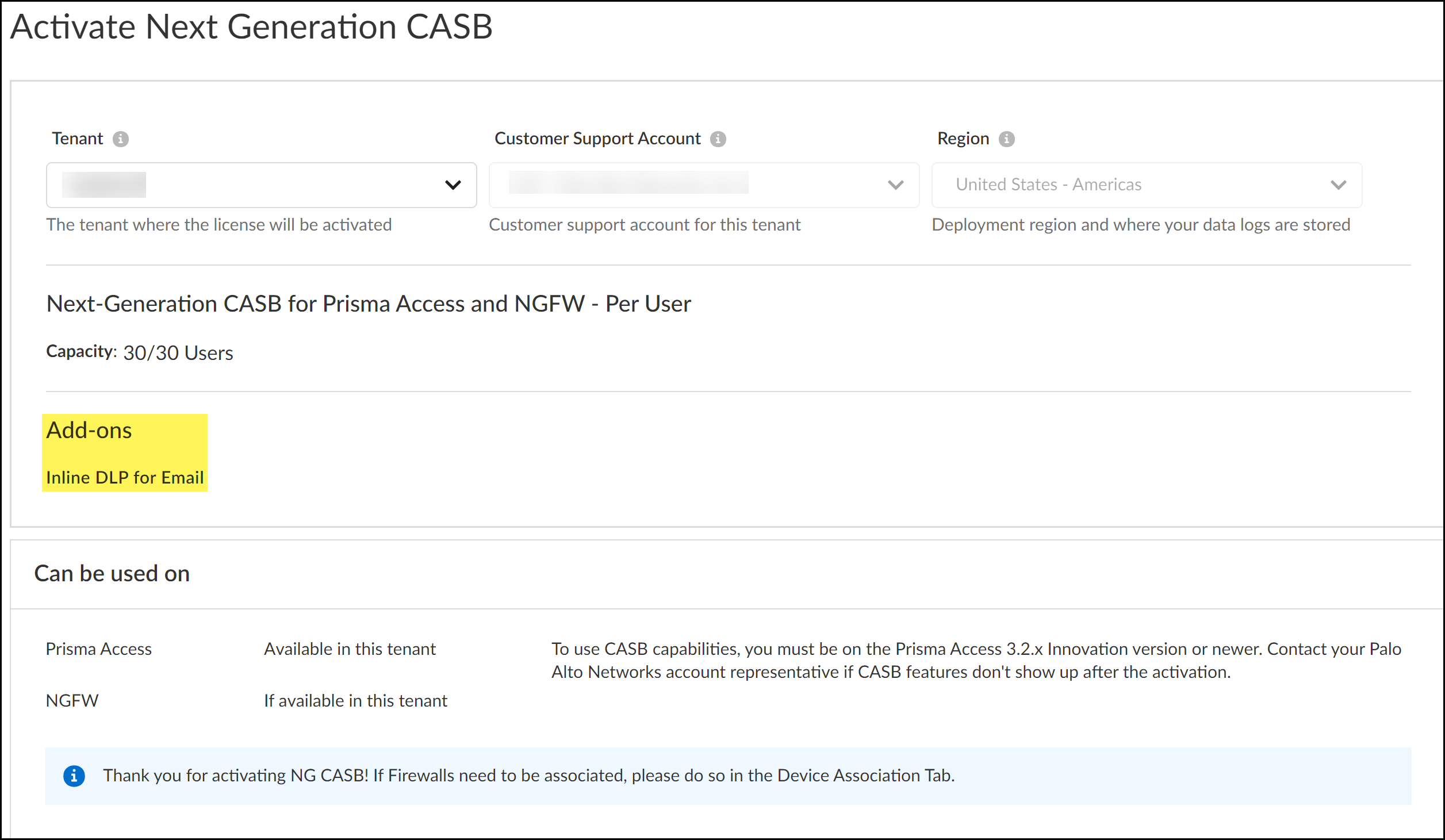 • Next-Generation CASB for Prisma Access and NGFW (CASB-X) license