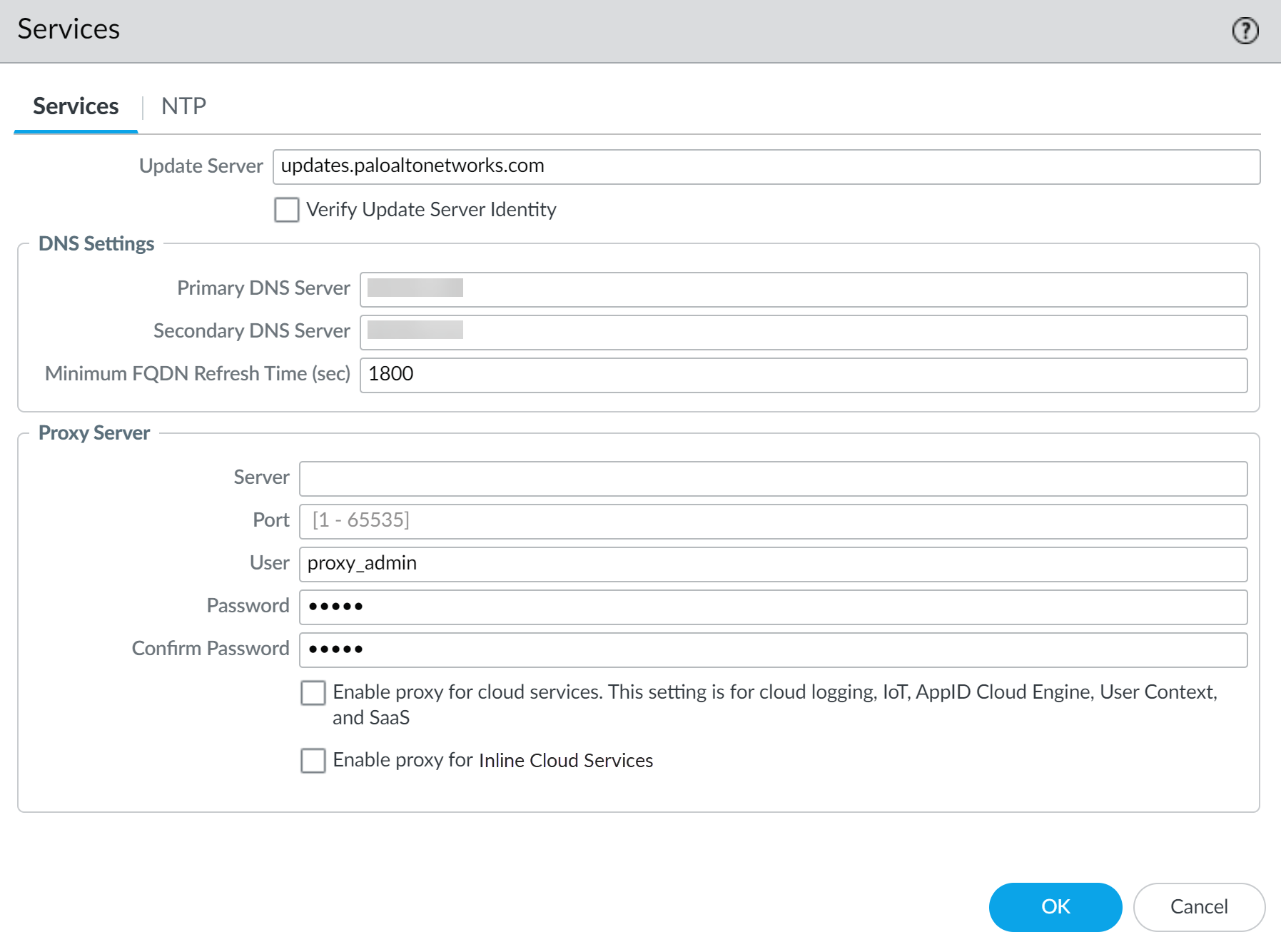 • Enable proxy for cloud services—If you’re using Strata Logging Service for log storage, enable this setting.