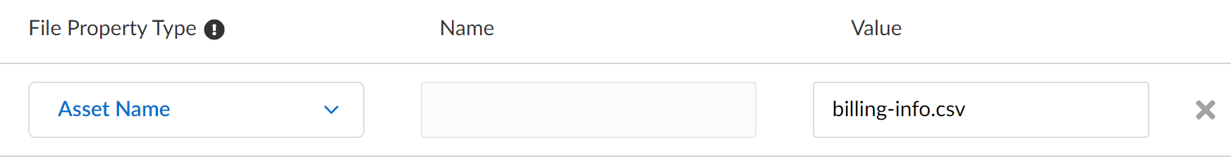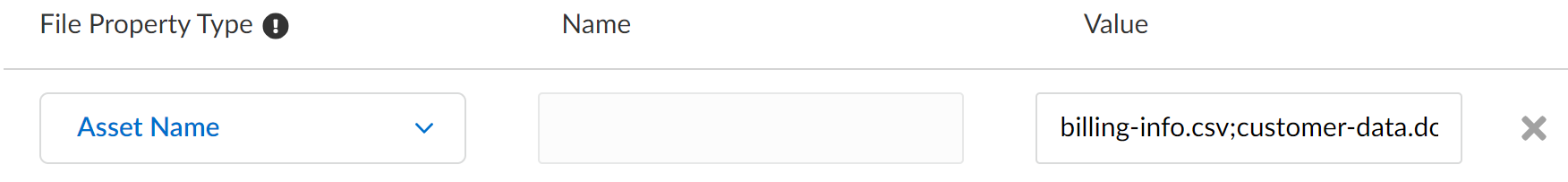 • For plaintext Asset Name values, the asset name must include the file extension. For example, billing-info.csv or customer-data.docx.