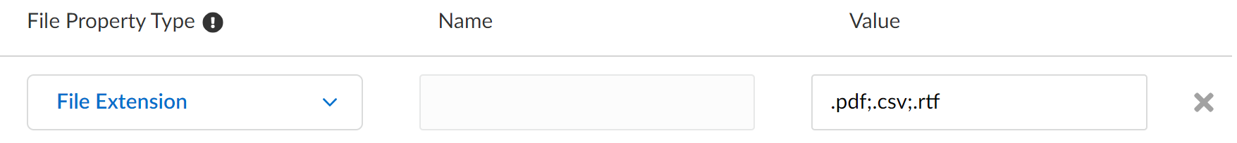 (Extended Properties and Custom only) You must enter the file property Name to identify which extended or custom property Enterprise DLP needs to inspect for.