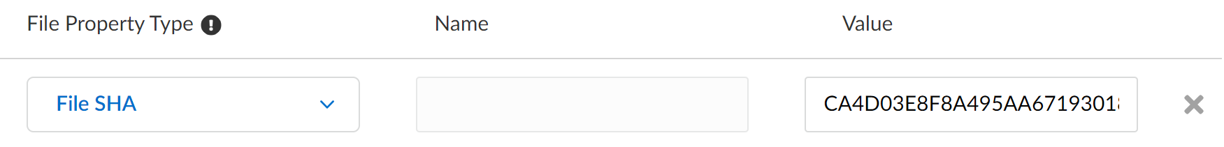 Only one File SHA entry is supported per data pattern. However, you can add up to 1,000 File SHA values to an File SHA entry using ; as a separator. For example, CA4D03E8F8A495AA671930184A04275E050D096B9E7E3CF693E0AB12898F3A46;5C4753EAE1F27F0D7EDB5F3245155F668BF5B86A8B3BB2D86F32C65692837F79.