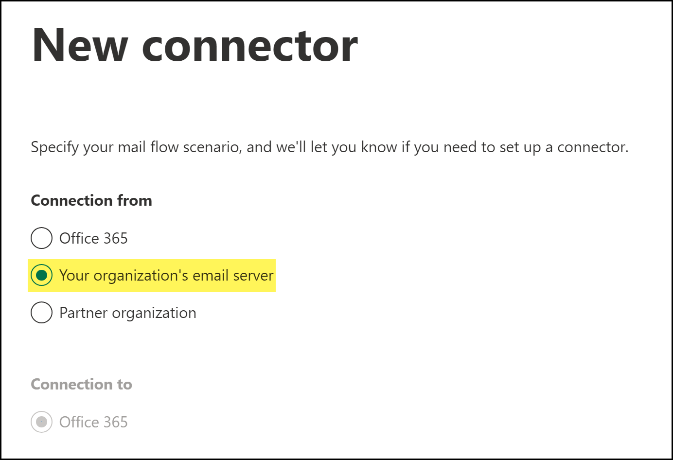 1. Select Mail flowConnectors and Add a connector to launch the Microsoft Exchange Connector wizard.