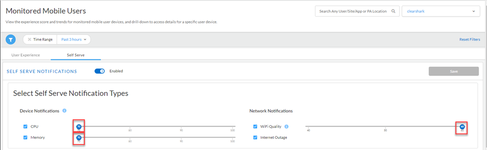 3. Adjust the thresholds by sliding the blue dot on the threshold lines against each notification type and Save your changes.