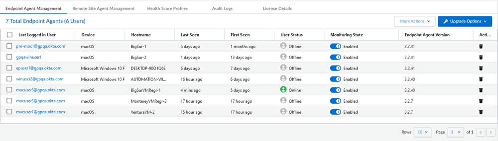 Refer to Manage Autonomous DEM Agent Upgrades to learn about the Upgrade Options.
