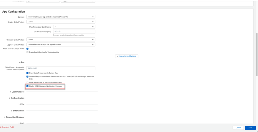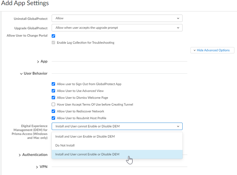 DEM is supported on GlobalProtect app version 5.2.11 with Content