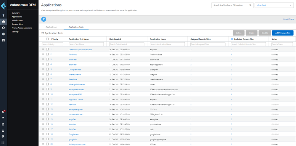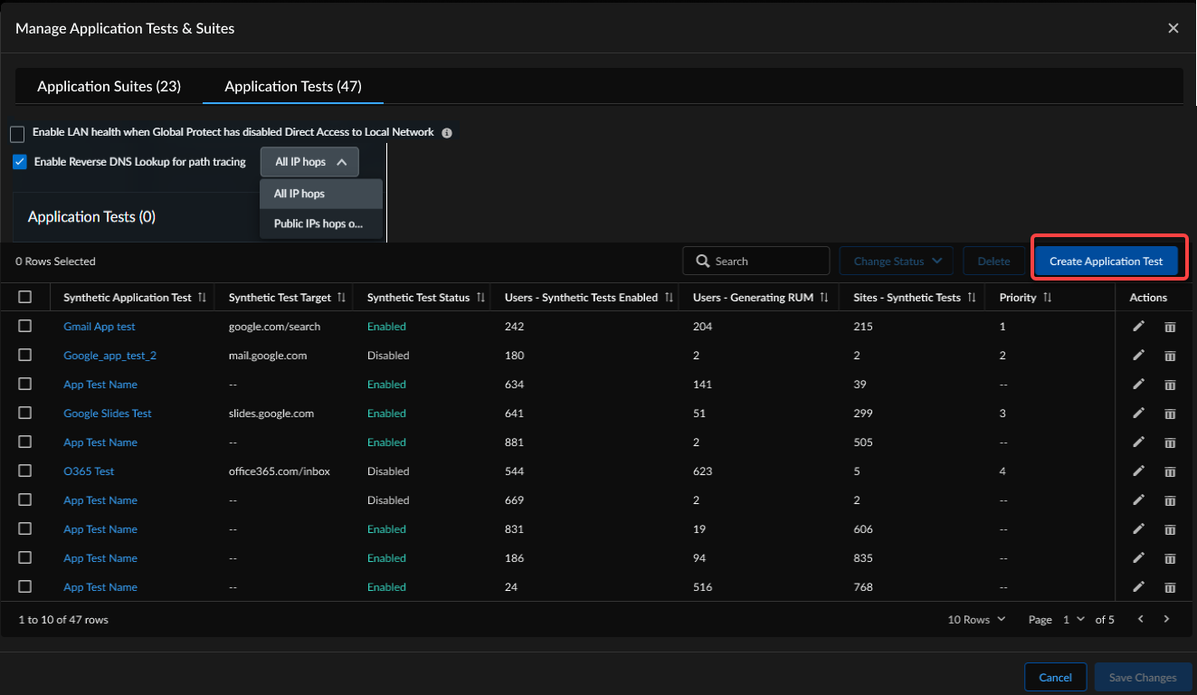 policy rules that allow the synthetic test traffic over ICMP, TCP,