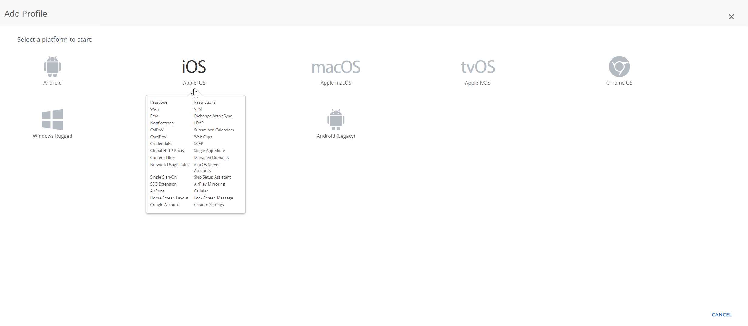 - Select iOS from the platform list.