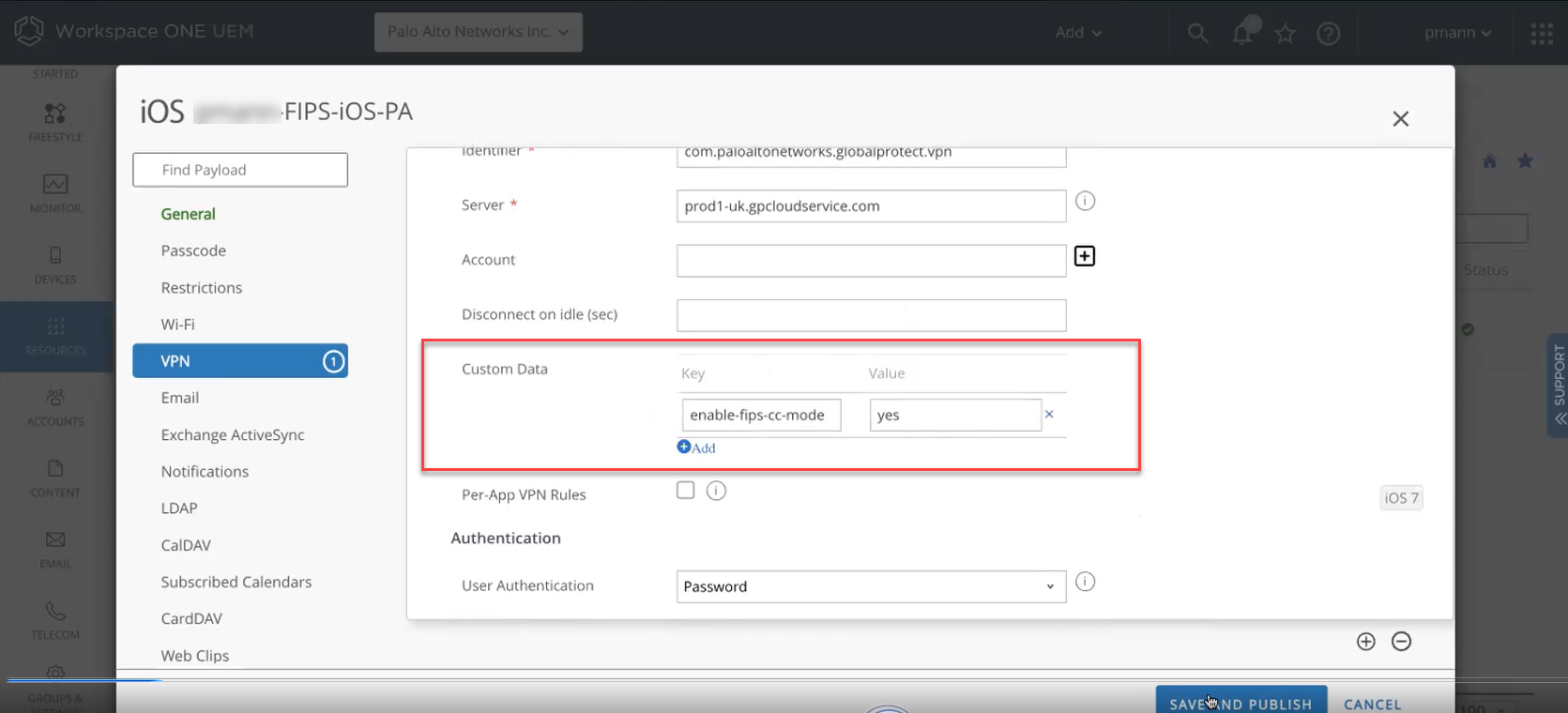 FIPS-CC mode for GlobalProtect™ on iOS endpoints using Workspace ONE.