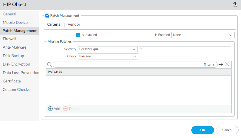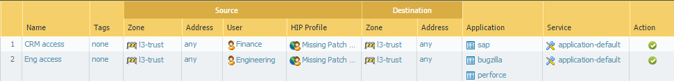 Create the HIP profiles that you plan to use in your policies.For example, if you want to ensure that only Windows users with up-to-date patches can access your internal applications, you might attach the following HIP profile that will match hosts that do NOT have a missing patch: