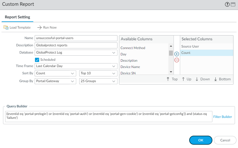 ((eventid eq 'portal-prelogin') or (eventid eq 'portal-auth') or (eventid eq 'portal-gen-cookie') or (eventid eq 'portal-getconfig')) and (status eq 'failure')