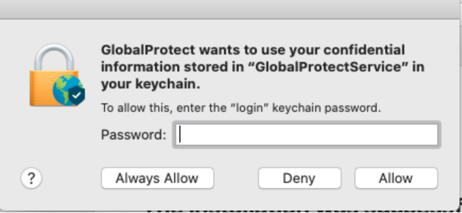 The following Keychain pop-up prompt can appear when GlobalProtect