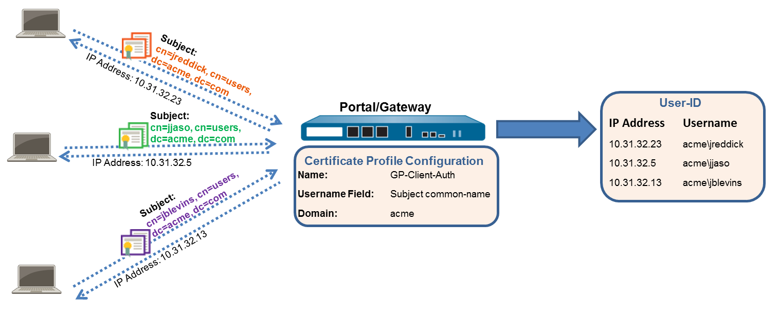 the portal or gateway can use a certificate profile to determine