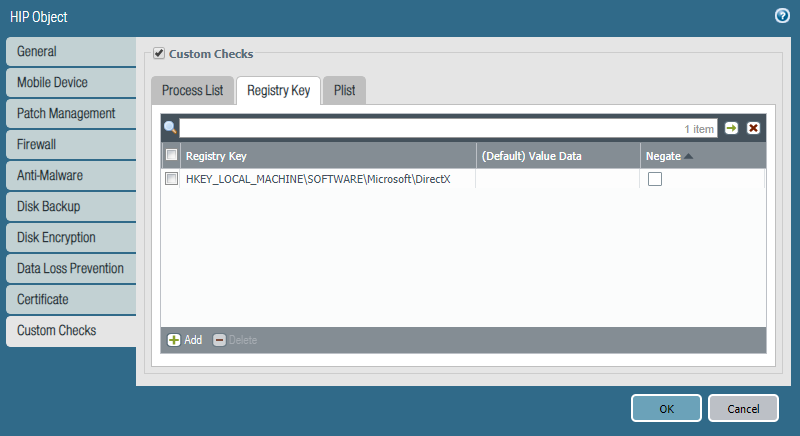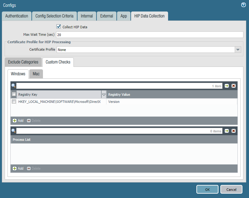 instructs the GlobalProtect app to collect specific registry information (Registry