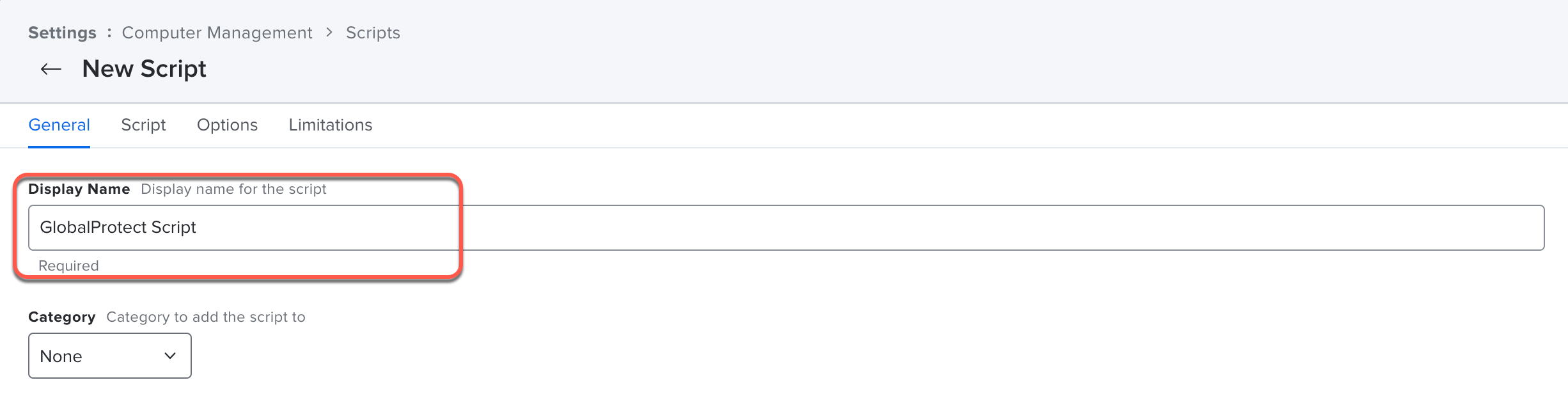 3. Enter a Display Name for the script.