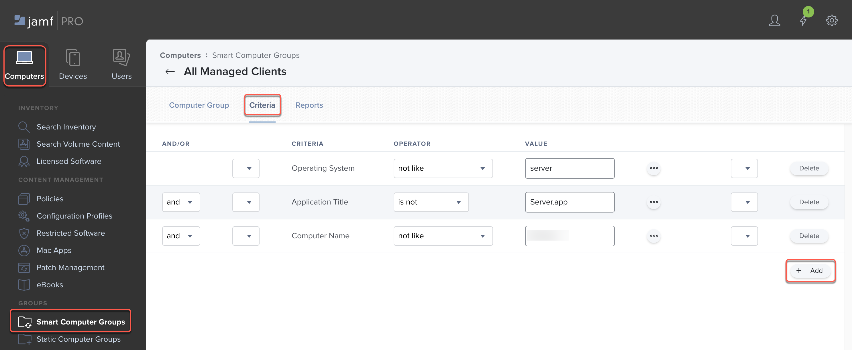 2. Click Computer Groups and Add the Smart Computer Group that you created in step 6.