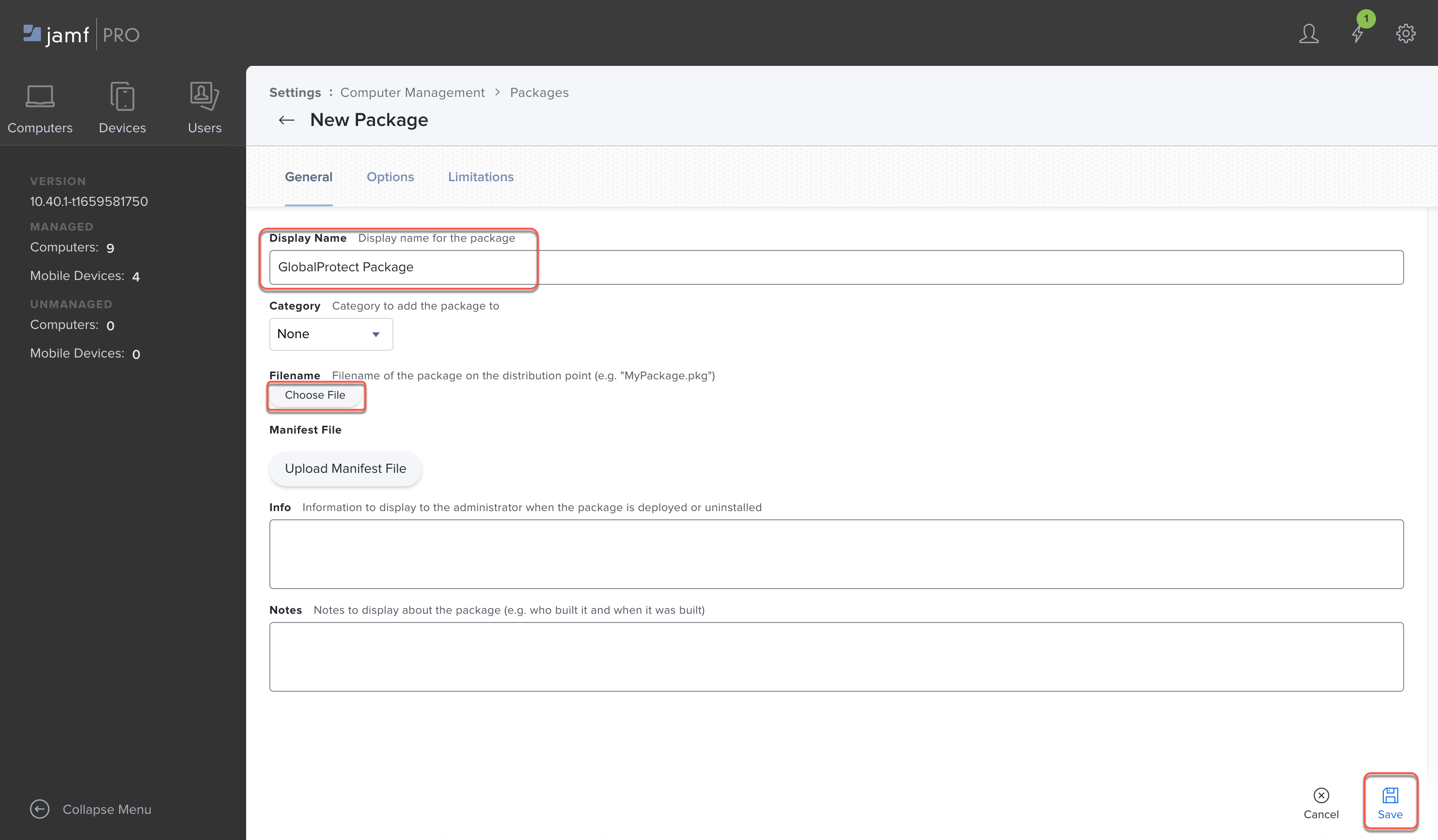 2. Upload the GlobalProtect app PKG file to Jamf Pro: