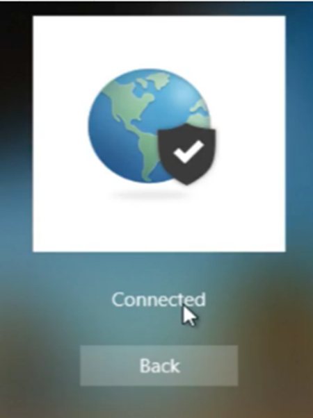 5. After successful authentication, the GlobalProtect Connected screen displays. The device now has the connectivity required to reach the domain controller and join the domain. Click Back.