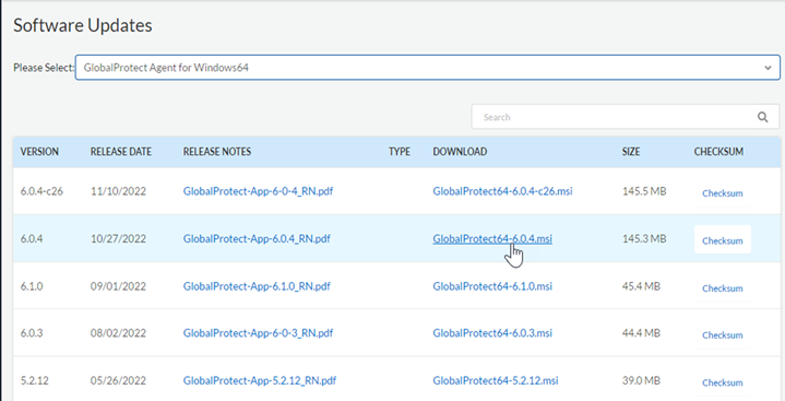 1. Download the GlobalProtect app MSI file from the Palo Alto Networks Customer Support Portal.