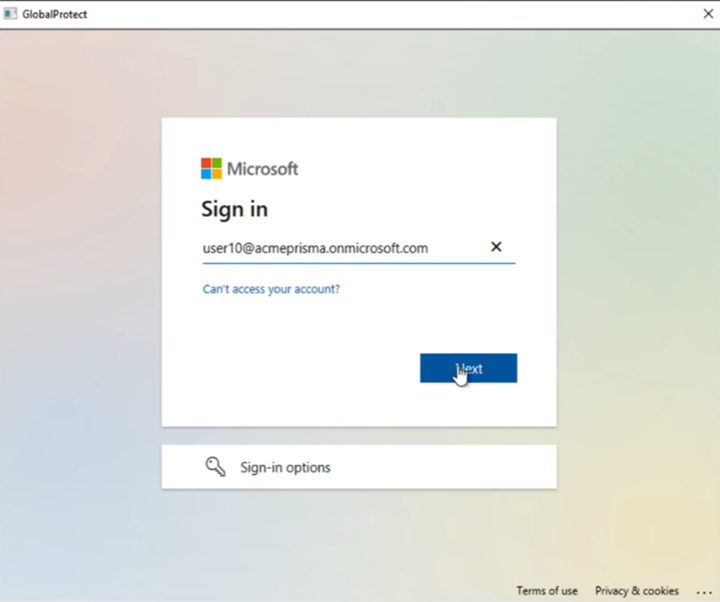 4. GlobalProtect prompts the user to log in to the credential provider, after which Windows Autopilot can finish configuring the device.