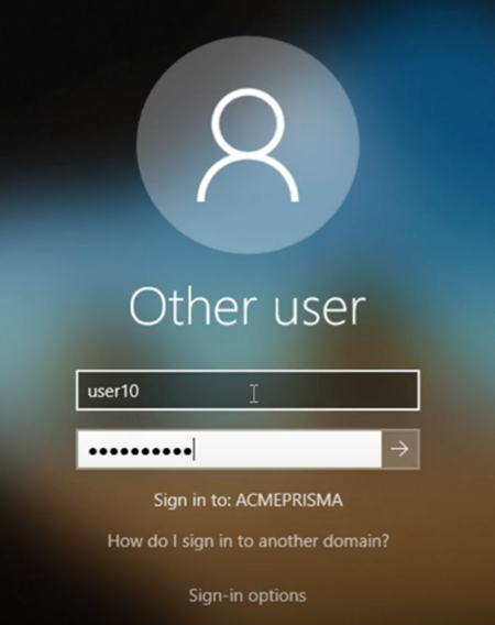 6. Enter your Windows domain login credentials to log in to the device and join the domain.