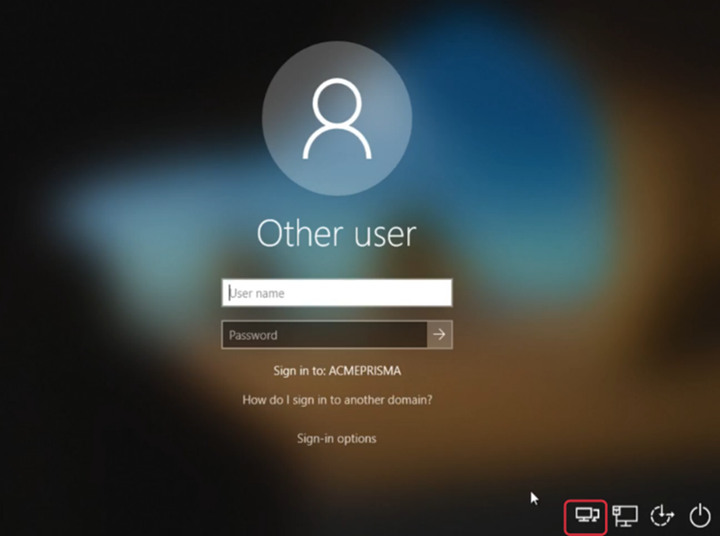 3. The end user clicks the Pre-Login Access Provider (PLAP) button to log in to GlobalProtect and establish the tunnel to the GlobalProtect gateway (on premises or Prisma Access), enabling access to the domain controller.