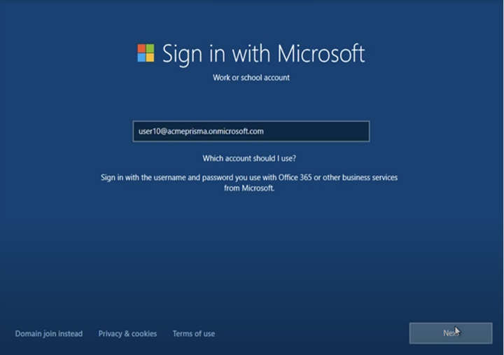 7. After you successfully authenticate using the domain credentials, Autopilot finishes configuring the user profile.