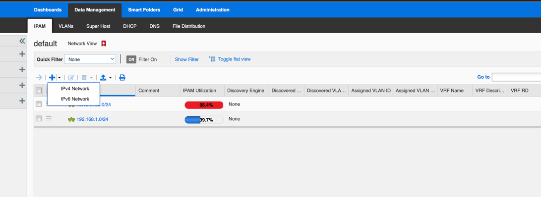 4. Click Add under Toolbar to add IPv4 network.
