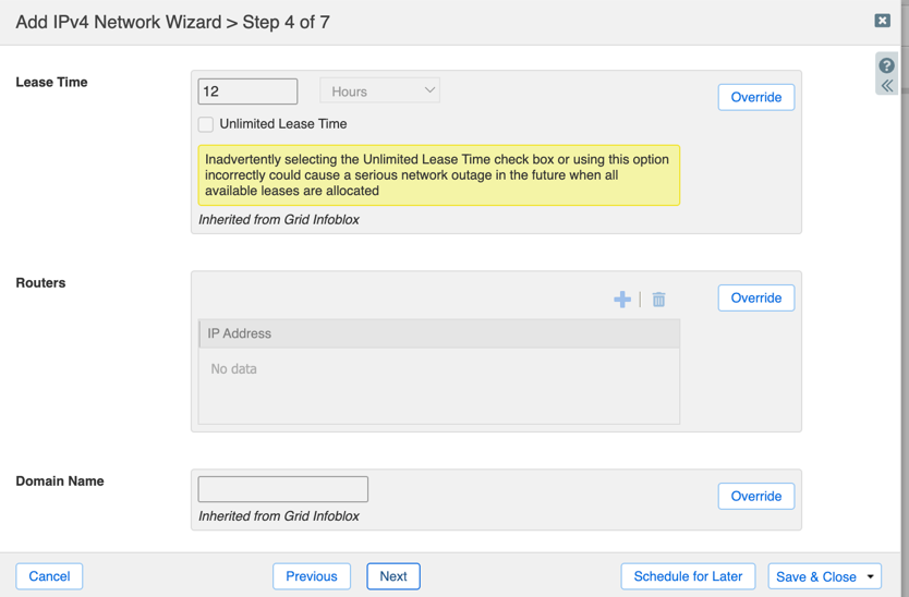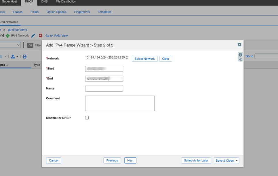 For the latest information on configuring DHCP server, refer to the Infoblox documentation such as DHCP server on the Infoblox server.