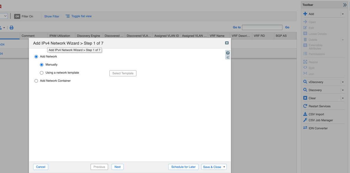 5. Click Next to add IPv4 Network.