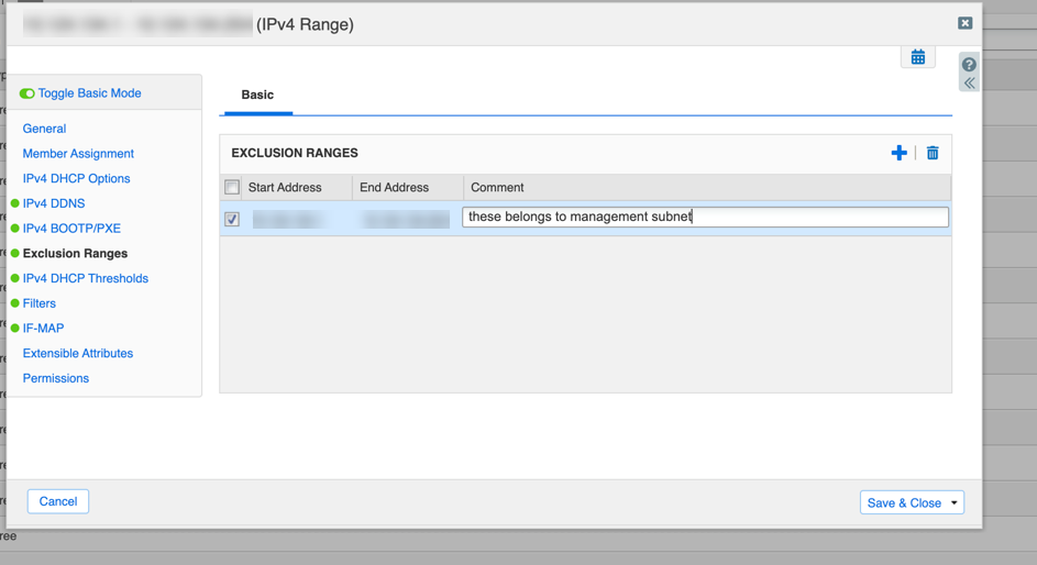 18. (Optional)Enter the range of IP addresses you want to exclude from the range. Click the Add sign to add the Exclusion Ranges .