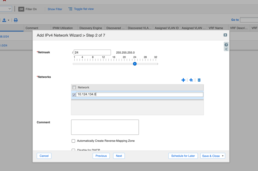 6. Add the network IP address and click Next.