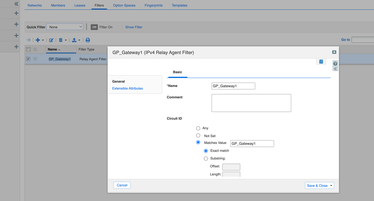 22. After creating the DHCP configuration, you can create filters with Gateway Name.