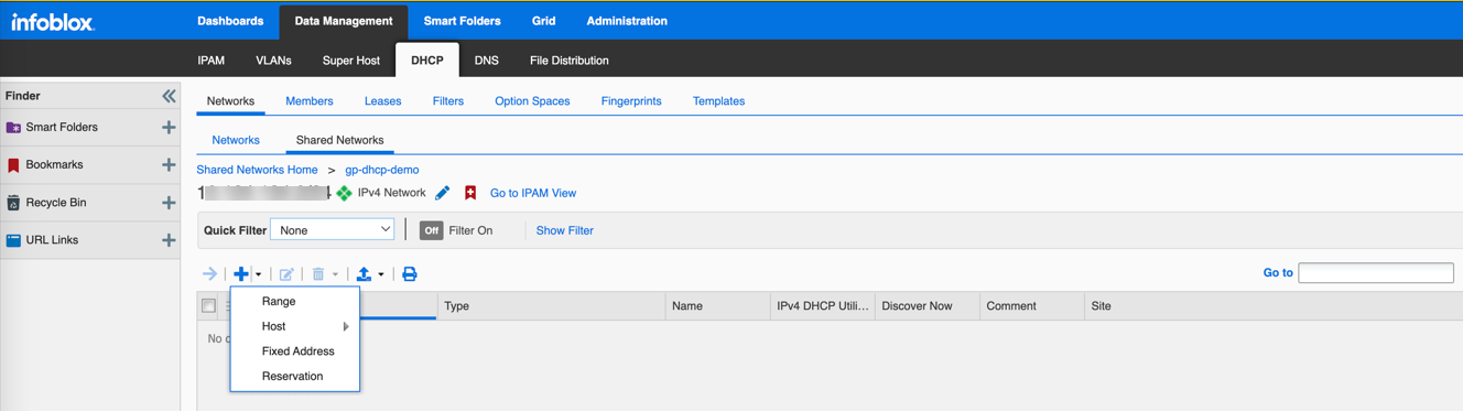 12. To add Shared Network, go to DHCPNetworksShared Networks.