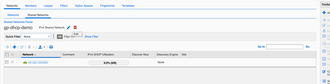 17. After adding the IPv4 ranges, the IP addresses within the range will be displayed under the Shared Networks tab. Click Edit to edit the details.