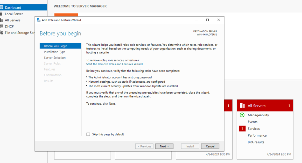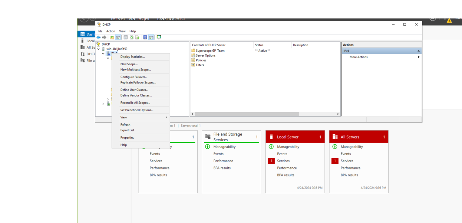 Configure DHCP Server on the Windows Server