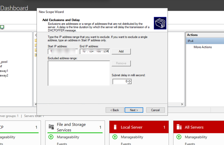 12. (Optional) Enter the range of IP addresses that you want to exclude and will not be distributed by the server.