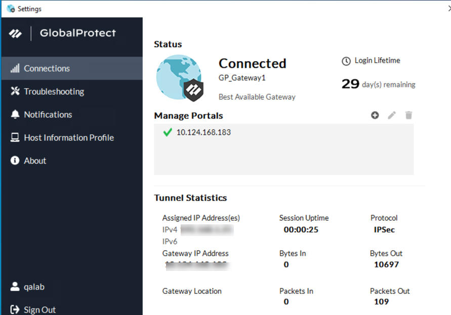 16. The added IP addresses will be displayed under the Connections tab on the GlobalProtect app.
