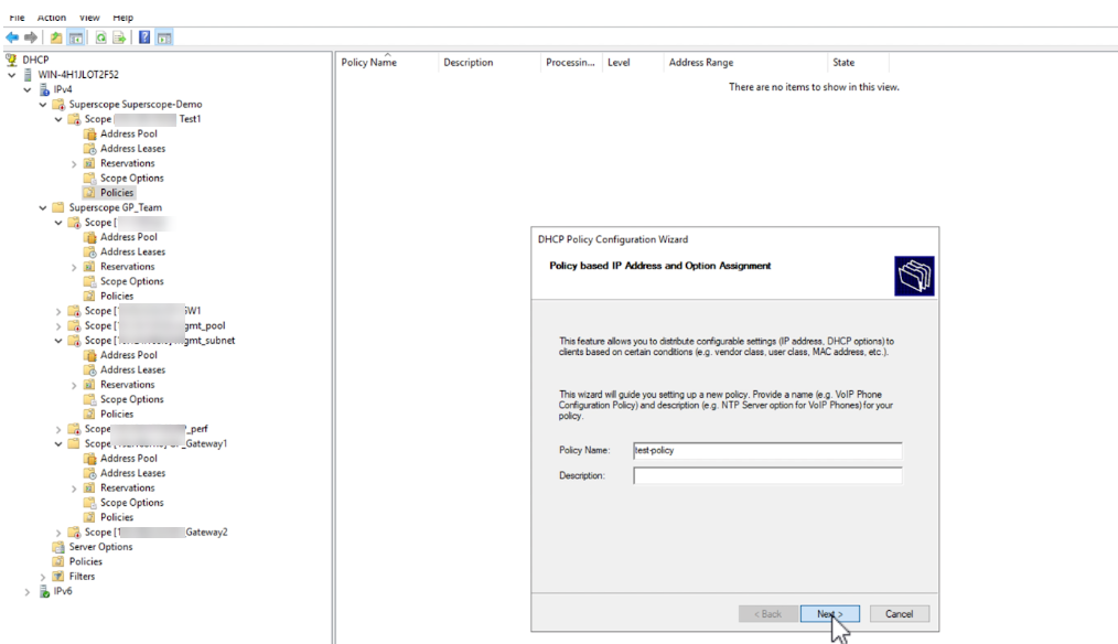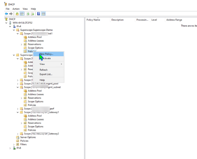 Configure DHCP Policy on the New Scope